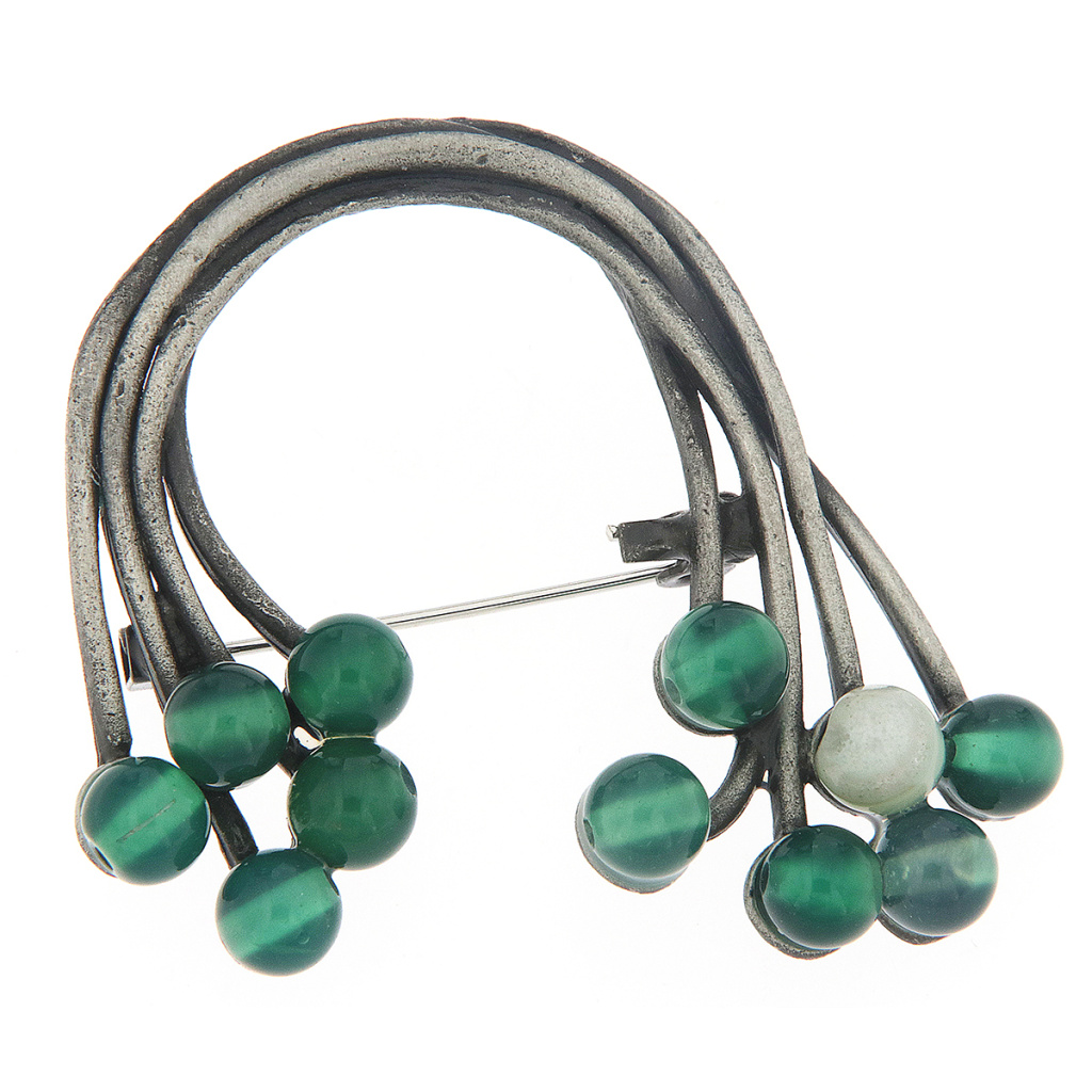 - Tato úžasná brož s duhou dodá každému oblečení elegantní a jemný nádech. Na motivu duhy jsou umístěné zelené skleněné korálky - ze kterých vyzařuje půvab a neodolatelný lesk. Brož je dostatečně lehká pro každodenní nošení. Spona na zadní straně je pohodlná a komfortní. Tmavá stříbrná barva z něj dělá ideální doplněk ke každému oblečení, kterému dodá trochu jiskry, aniž by byl příliš výrazný. Ať už chcete svému vzhledu dodat styl, nebo jen chcete něco, čím můžete předvést svůj jedinečný smysl pro módu - tento doplněk je pro vás ideální!