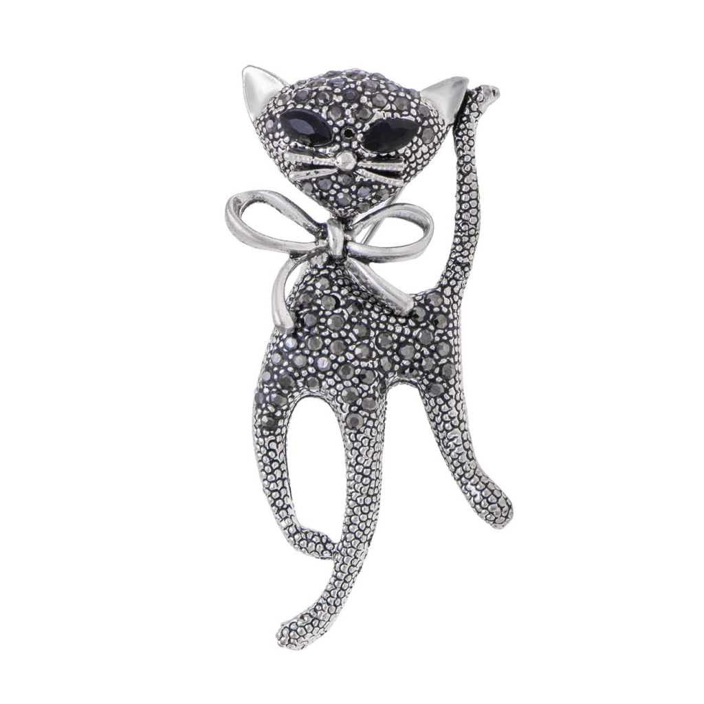 Brož kočka se zirkony černé barvy 9001685 -5