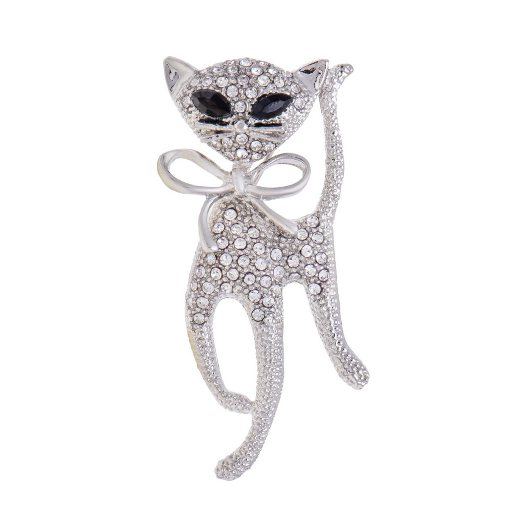 Brož kočka se zirkony čiré barvy 9001685-4