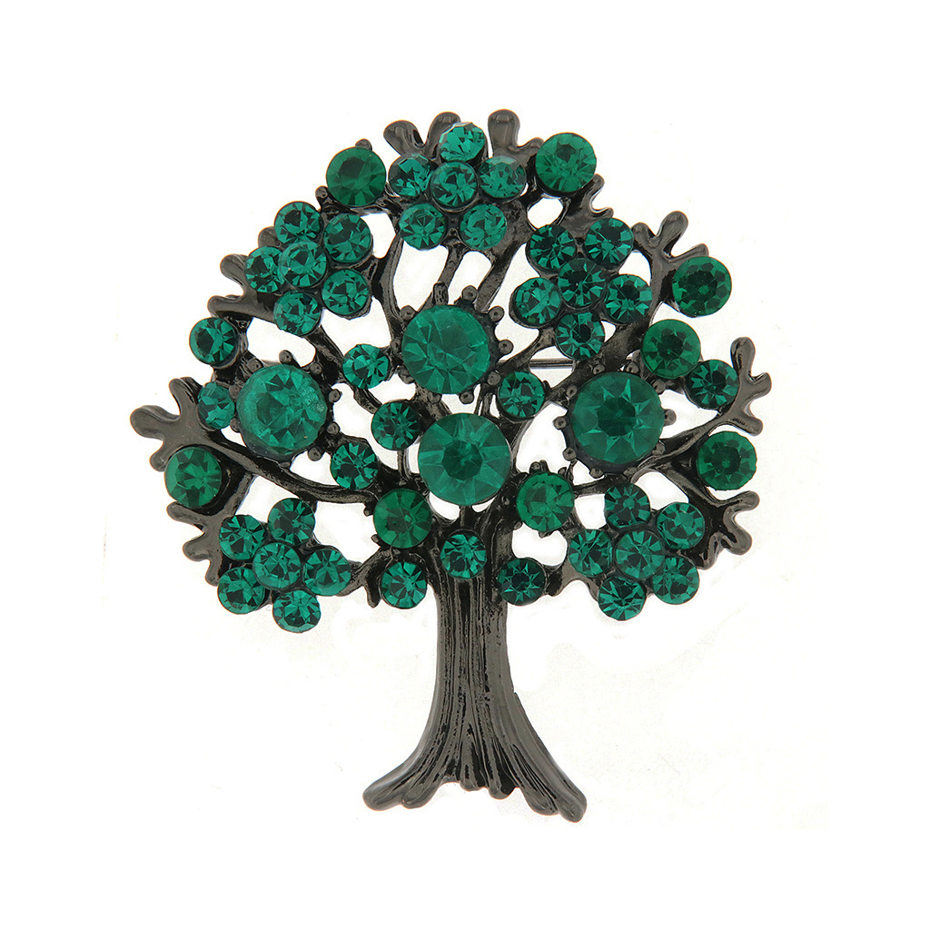 Brož - strom s broušenými kamínky, zelené barvy