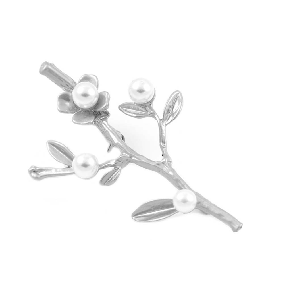 Brož - strom zdobená perleťovými perličky, stříbrná 9000908