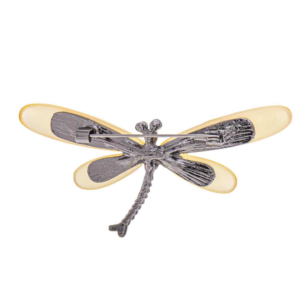 Elegantní brož ve tvaru vážky zaujme jemně tvarovanými křídly a barevnými detaily, které vytvářejí harmonický a živý dojem. Lesklý povrch v kombinaci s dekorativními zirkony dodává broži šperkový charakter, díky kterému se stane nepřehlédnutelným doplňkem saka, kabátu, šatů i šátku. Vážka je symbolem lehkosti, proměny a elegance, což z této brože činí krásný doplněk i milý dárek.