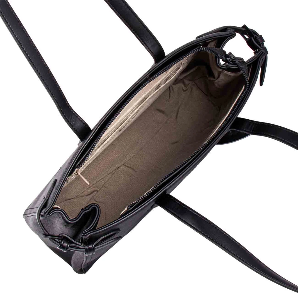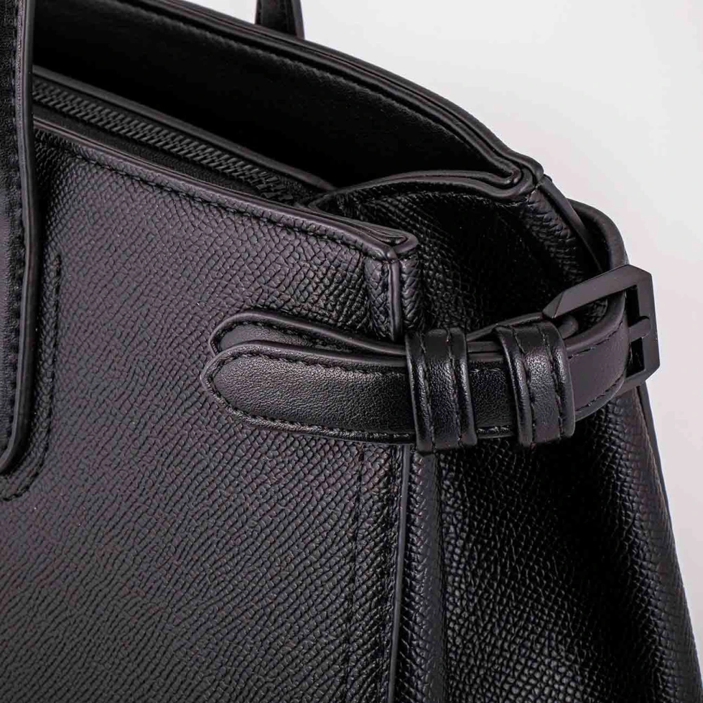 - Boční pásky s dekorativní sponou pro úpravu tvaru kabelky