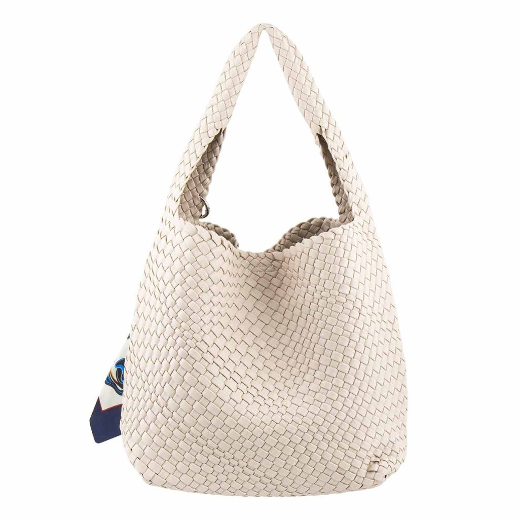 Dopřejte si zářivý doplněk, který spojuje styl a praktičnost v dokonalé harmonii. Precizní pletený vzhled působí luxusně a zároveň jemně, díky čemuž kabelka snadno doplní jak elegantní, tak ležérní outfit. Výrazný detail v podobě šátku dodává celku osobitý a moderní charakter.