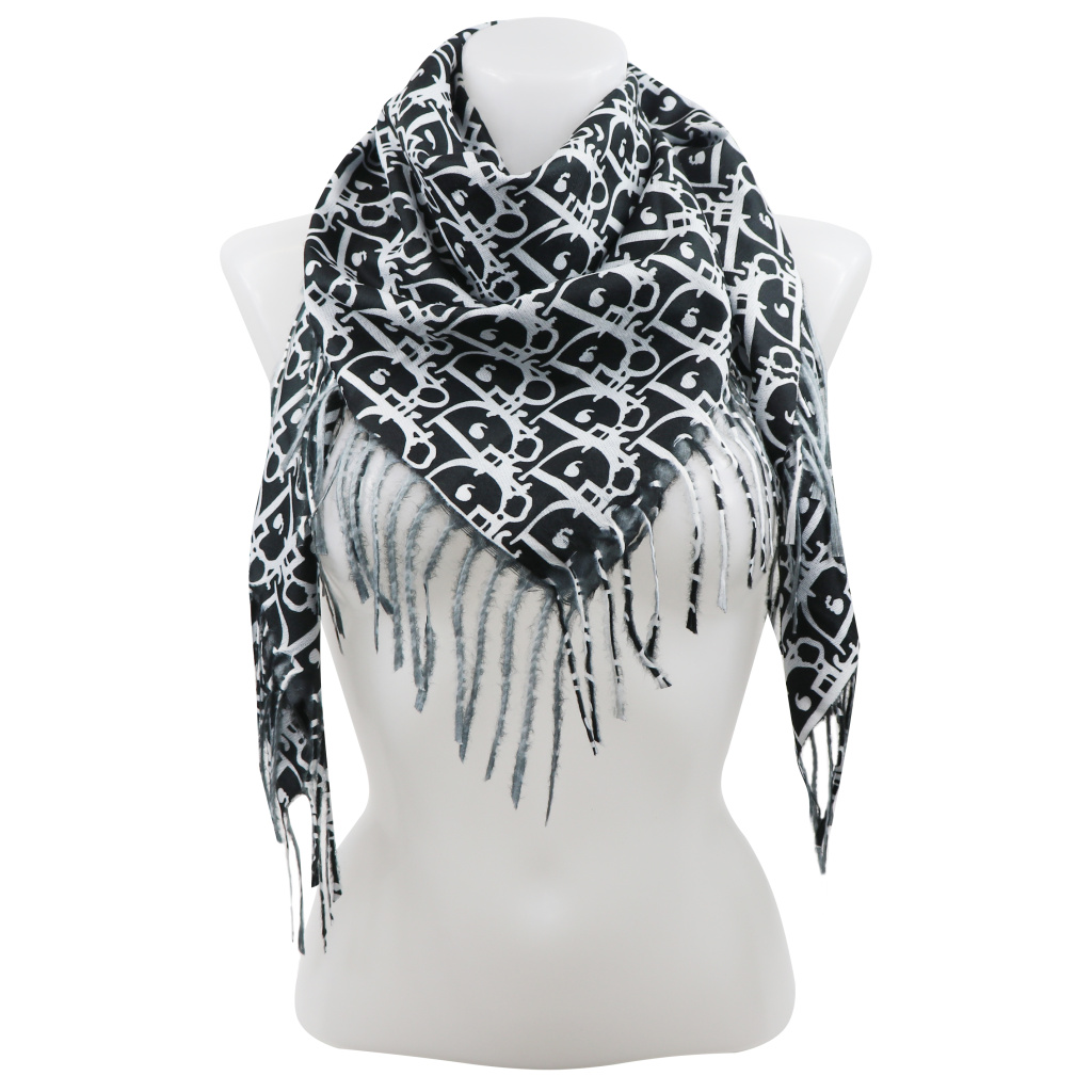 Dámský kašmírový čtvercový šátek, písmena D-i-o-r s třásněmi 2115-28, černo-bílé barvy 7200593-7