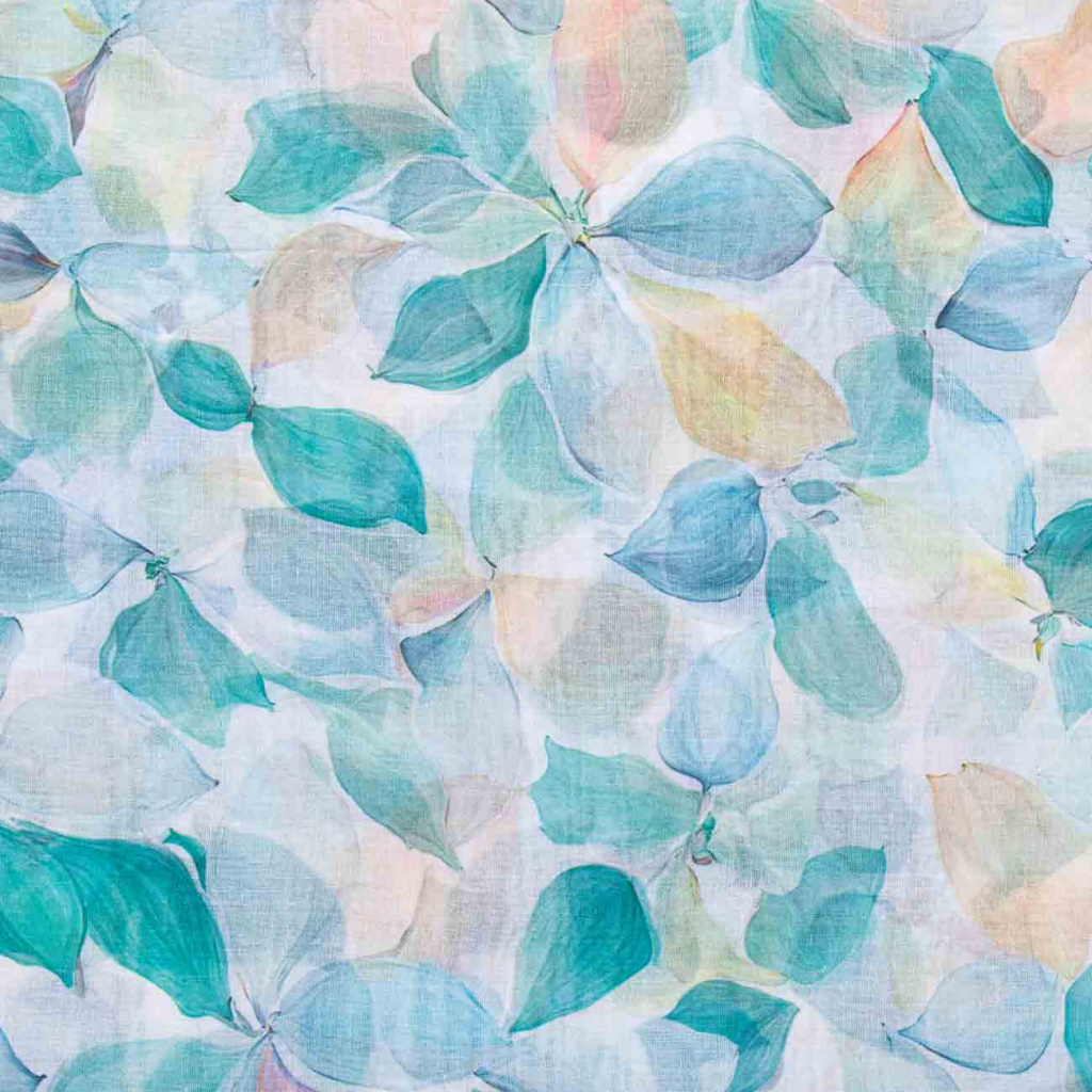 Tento zářivý a elegantní šál zaujme jemným akvarelovým motivem listů v harmonických pastelových odstínech. Díky lehkému a precizně zpracovanému materiálu působí velmi vzdušně a přirozeně splývá při každém pohybu. Nadčasový design z něj dělá výrazný doplněk, který dodá outfitu svěžest i jemnou eleganci.