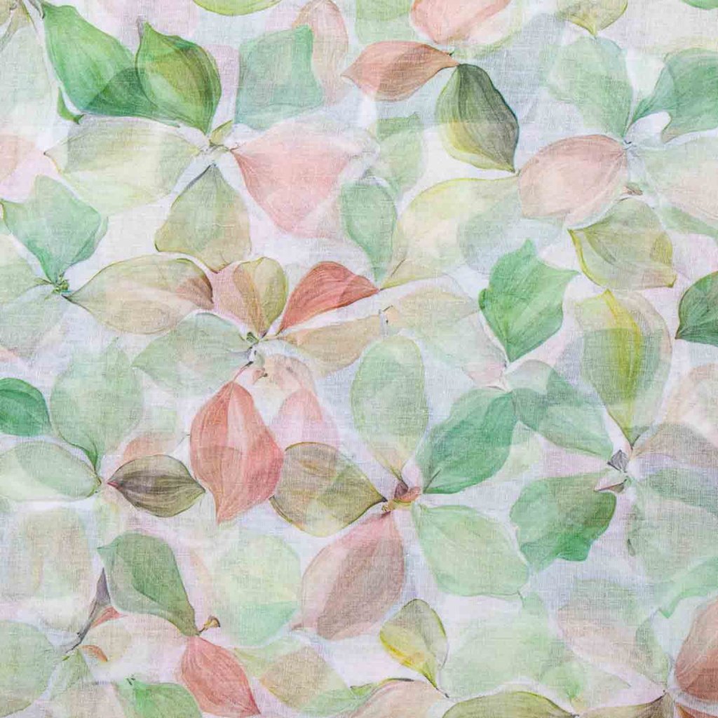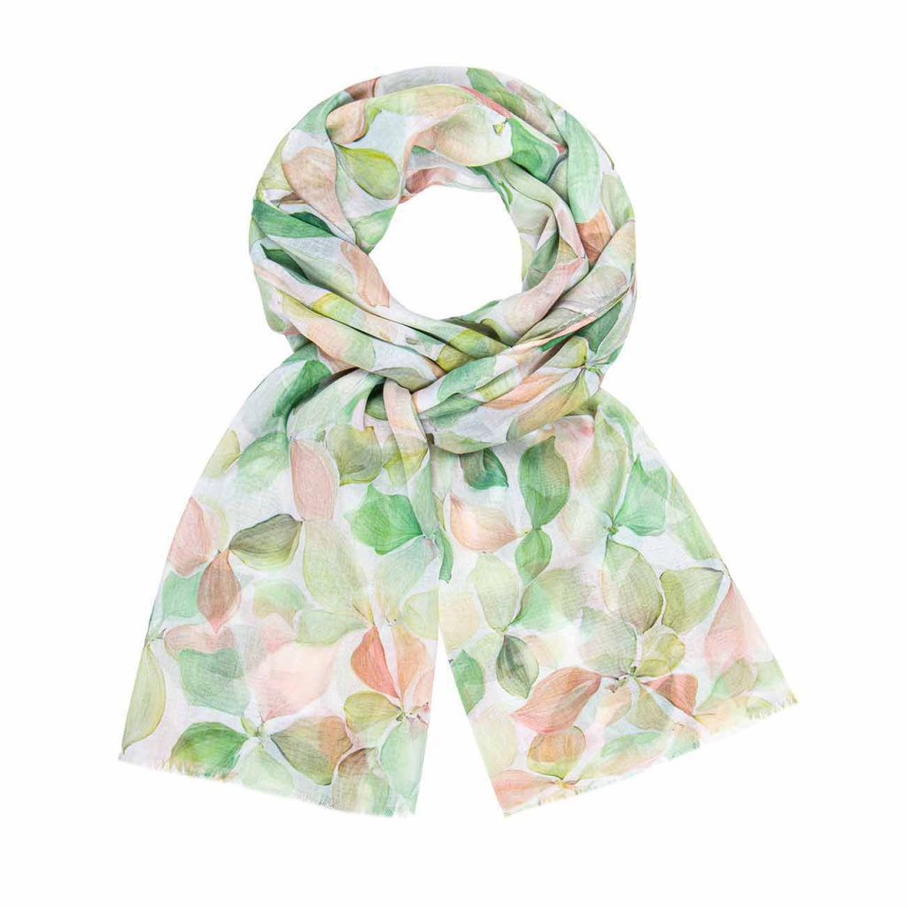 Tento zářivý a elegantní šál zaujme jemným akvarelovým motivem listů v harmonických pastelových odstínech. Díky lehkému a precizně zpracovanému materiálu působí velmi vzdušně a přirozeně splývá při každém pohybu. Nadčasový design z něj dělá výrazný doplněk, který dodá outfitu svěžest i jemnou eleganci.