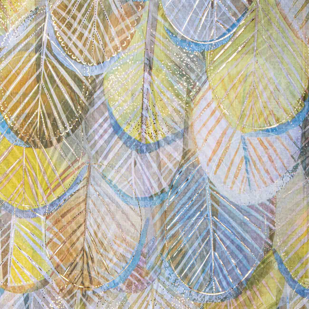 Lehká a stylová šála s jemným listovým vzorem, který doplňují elegantní zlaté akcenty. Moderní kombinace barev dodává šále svěží a sofistikovaný vzhled, díky kterému snadno oživí jak jednoduchý outfit, tak i elegantní kabát či sako. Příjemný materiál s příměsí hedvábí je měkký, vzdušný a krásně splývá při nošení.
