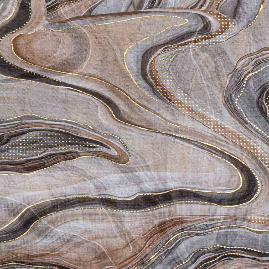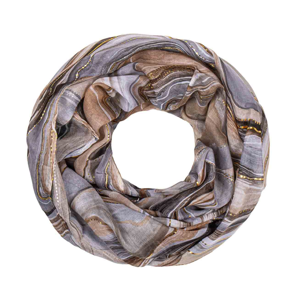 Nadčasová tunelová šála zaujme svým jemným abstraktním motivem s elegantními liniemi a decentními zlatými detaily. Lehký materiál s příměsí hedvábí působí zářivě, je příjemný na dotek a krásně splývá při nošení. Tento výrazný doplněk dodá každému outfitu styl, eleganci a moderní charakter.