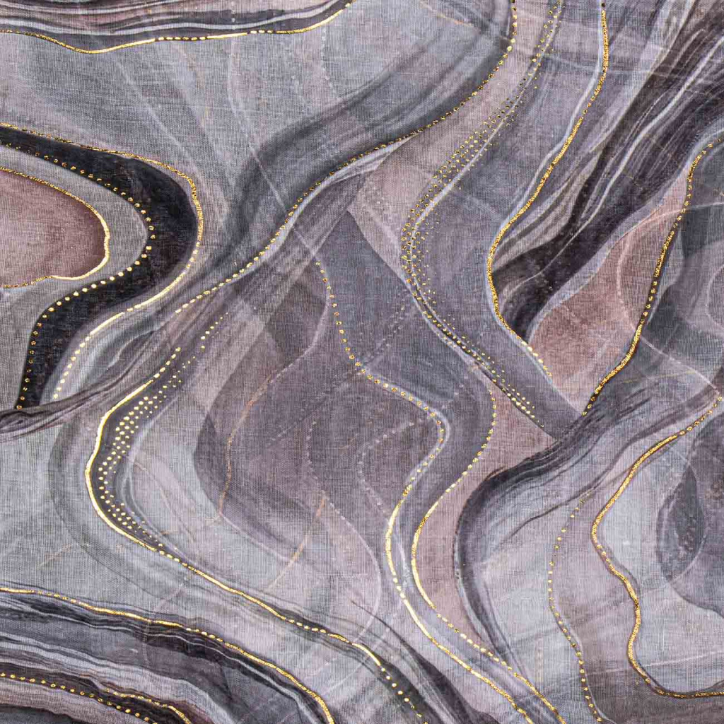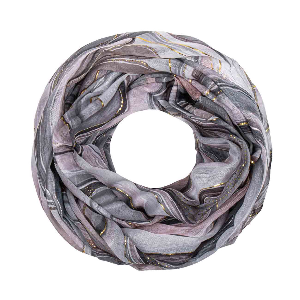 Nadčasová tunelová šála zaujme svým jemným abstraktním motivem s elegantními liniemi a decentními zlatými detaily. Lehký materiál s příměsí hedvábí působí zářivě, je příjemný na dotek a krásně splývá při nošení. Tento výrazný doplněk dodá každému outfitu styl, eleganci a moderní charakter.