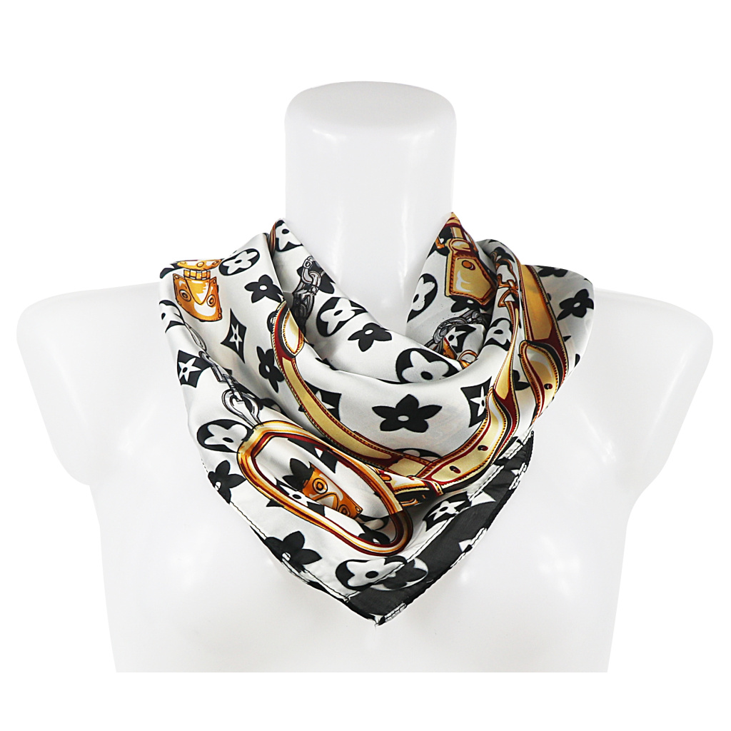 Dámský oboustranný hedvábný šátek YF2042-1 letuška s potiskem, černo-bílé barvy 7200618