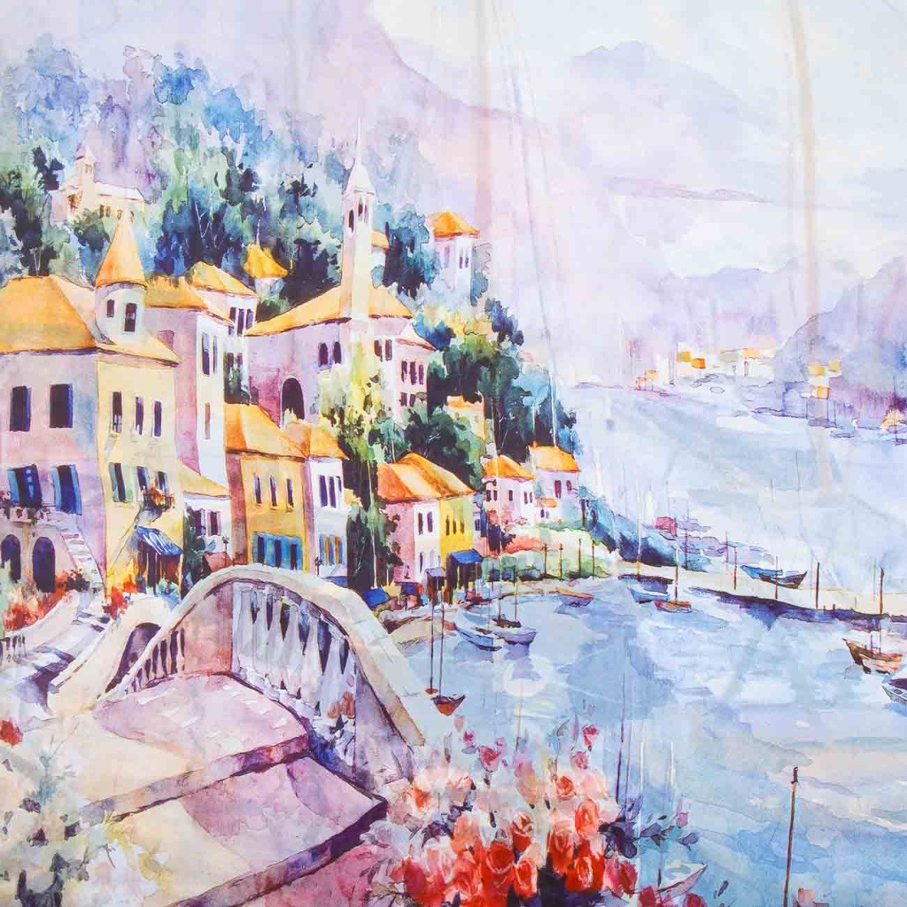 Dámský šátek s potiskem malby- Lodě v přístavu a Městečko v zálivu 7200733-1