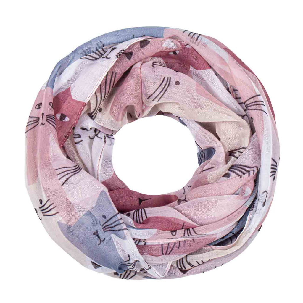 Originální tunelová šála s hravým motivem koček potěší každého milovníka zvířat i stylových doplňků. Jemný materiál s příměsí hedvábí je lehký, příjemný na dotek a krásně splývá při nošení. Veselý design dodává šále osobitý charakter a dokáže oživit jak jednoduchý, tak i elegantní outfit.