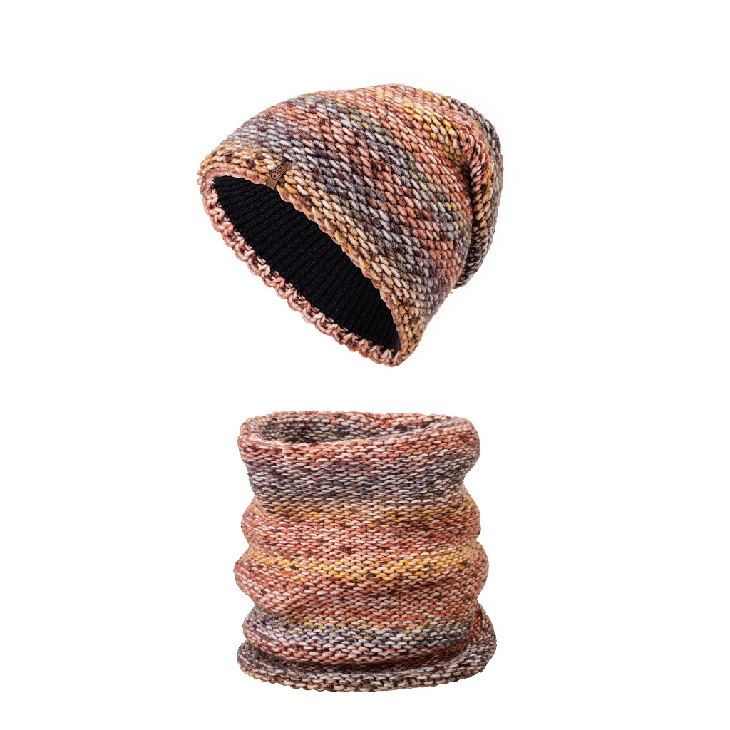 Dámský zimní set WROBI - čepice a tunel, melír oranžovo-hnědé barvy