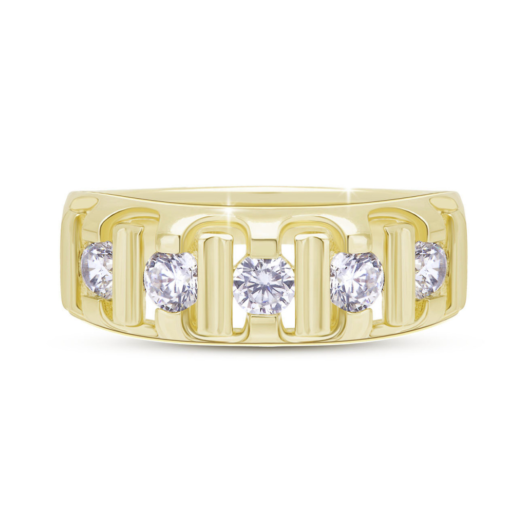 Stylový prsten s elegantním motivem pravidelně zasazených čirých zirkonů vyniká moderním geometrickým zpracováním a vysokým leskem. Výrazný, a přesto decentní šperk je ideální pro každodenní nošení i jako výrazný doplněk pro slavnostní příležitosti.