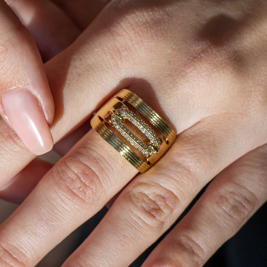 Výrazný prsten s oválným motivem ze zirkonů