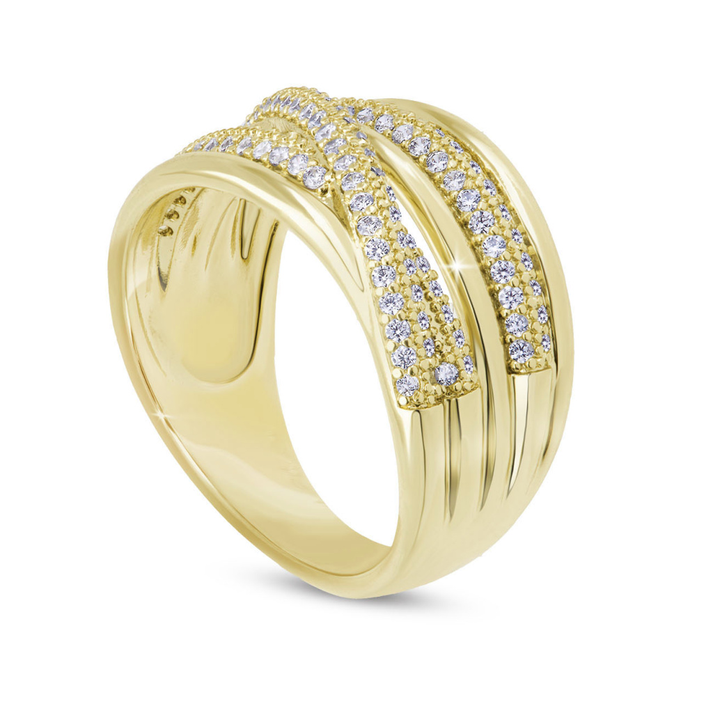DUBAI 0550 Prsten pozlaceno 14k zlatem překřížené zirkony Ellami