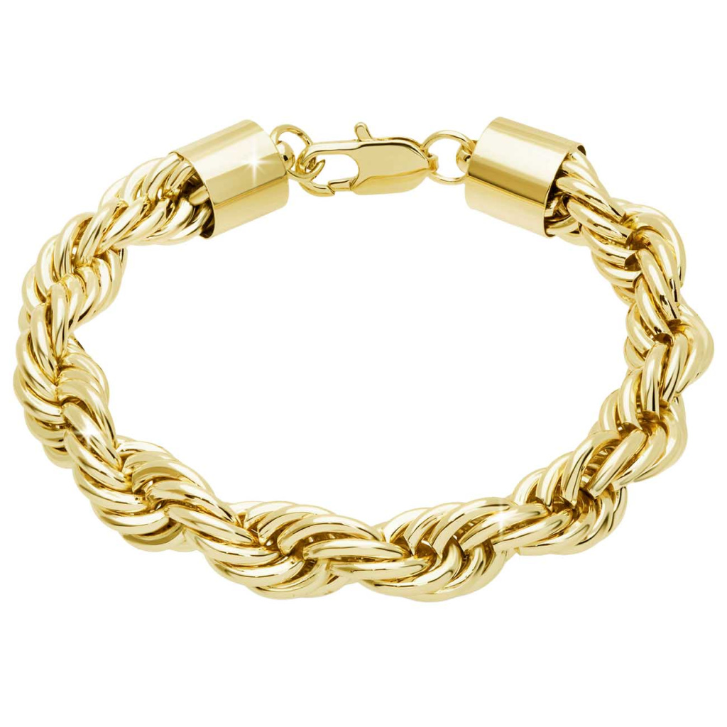 Vylepšete svůj styl tímto úžasným pozlaceným náramkem! Pozlacený masivní náramek 14k je vyrobený z rhodiovaného kovu a vyleštěný k absolutní dokonalosti. Tento úžasný náramek se hodí k jakémukoliv outfitu pro jeho extra luxusní lesk a zlatou barvu. Je vybaven krásným motivem proplétání a je ideální pro ty, kteří chtějí svému vzhledu dodat něco mimořádného a jedinečného. Náramek je vybaven zapínáním na karabinku.