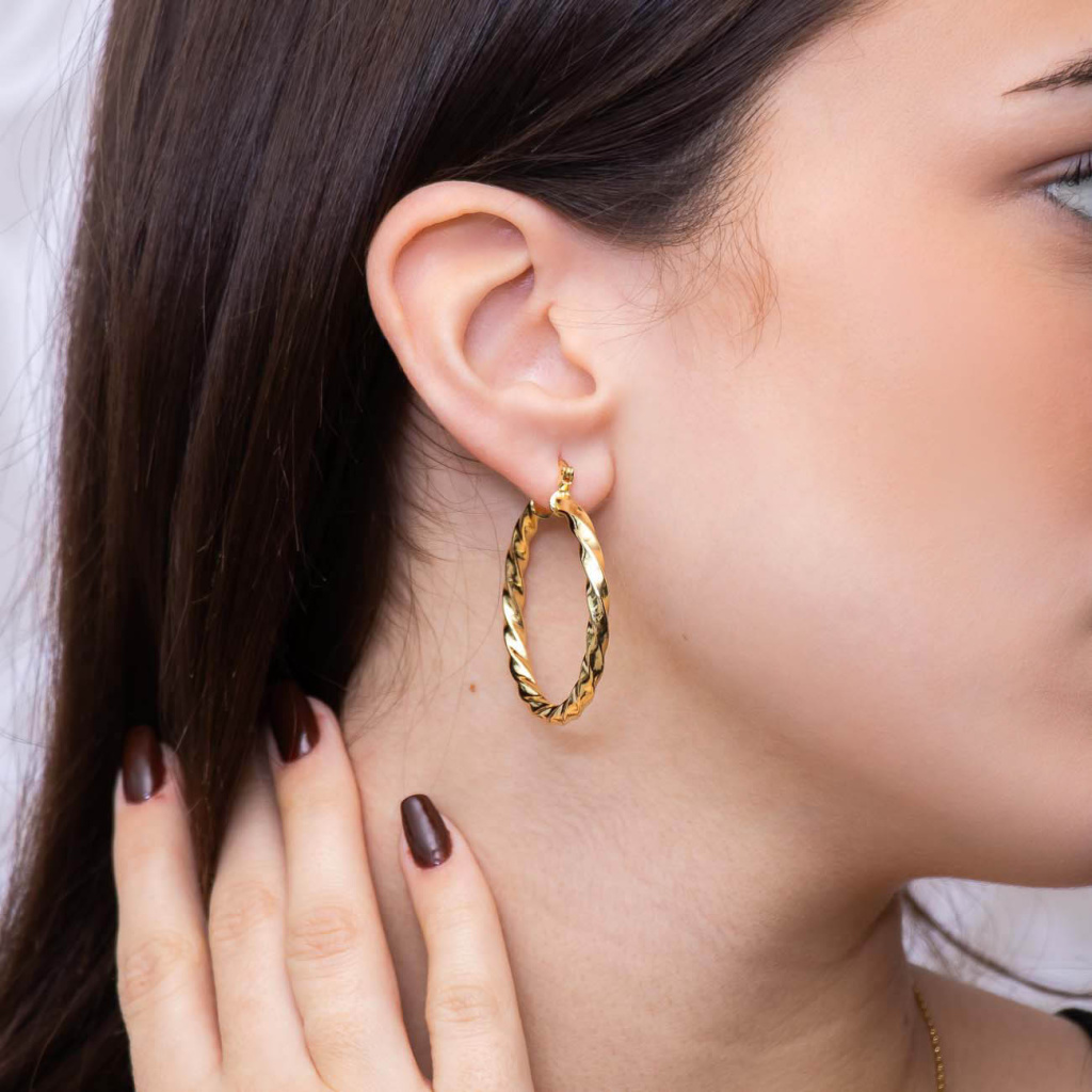 Tyto náušnice působí nadčasově a zároveň výrazně. Jemně kroucený tvar odráží světlo při každém pohybu a dodává vzhledu elegantní jiskru. Jsou precizní volbou pro ženy, které chtějí podtrhnout svůj styl bez zbytečné okázalosti.