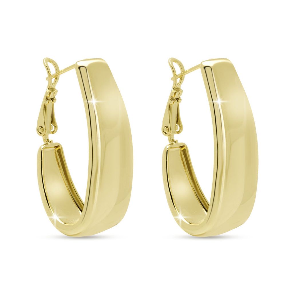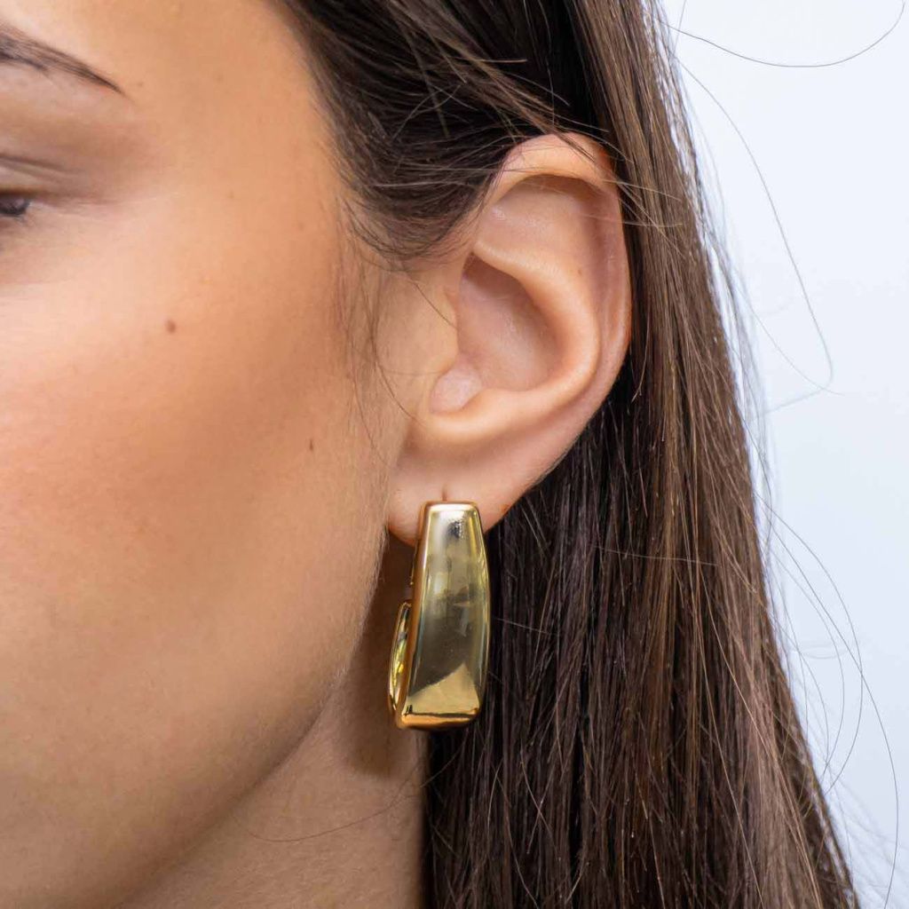 Tyto výrazné a zářivé náušnice zaujmou na první pohled svým čistým, precizním provedením a moderním tvarem. Hladký povrch v kombinaci s 14K pozlacením vytváří elegantní a nadčasový doplněk, který podtrhne Váš styl.