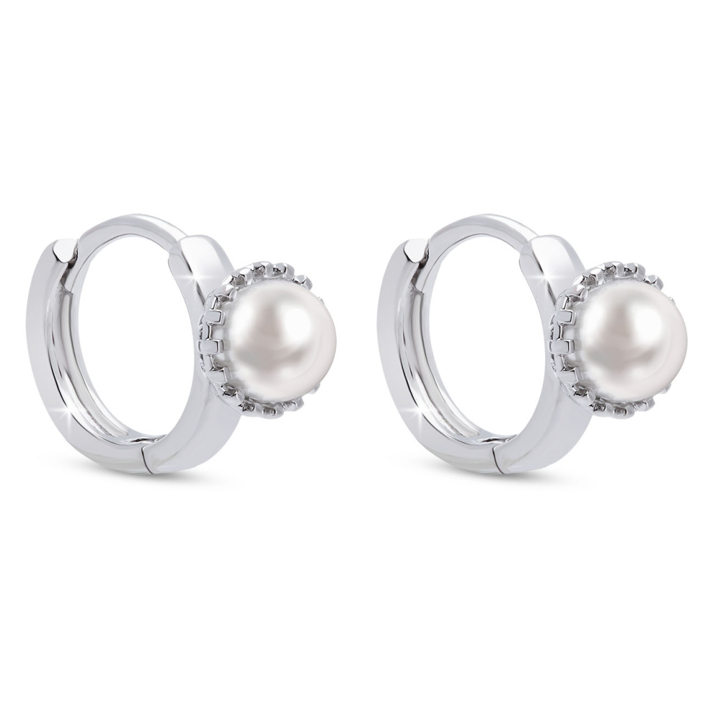 Rhodiované náušnice drobné kroužky s perlou. Decentně doladí každý outfit a přitom nepotlačí ostatní módní doplňky. Navíc s nimi budete vždy působit jemně a upraveně. Tento výrobek neobsahuje těžké kovy.