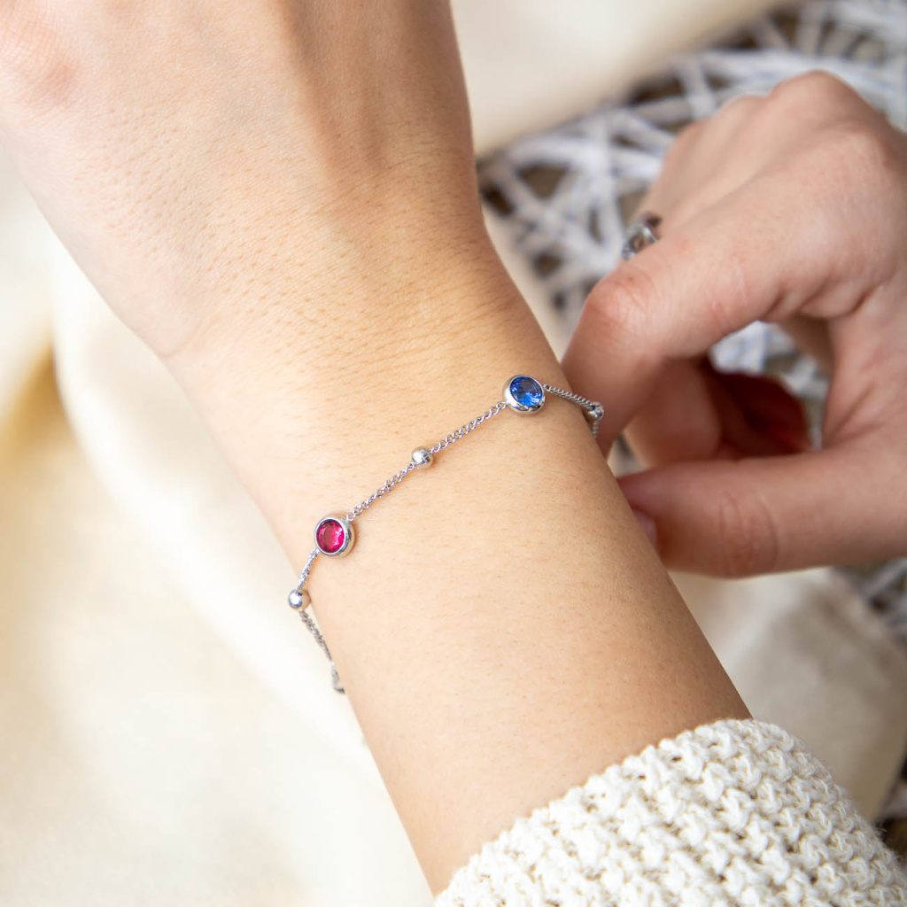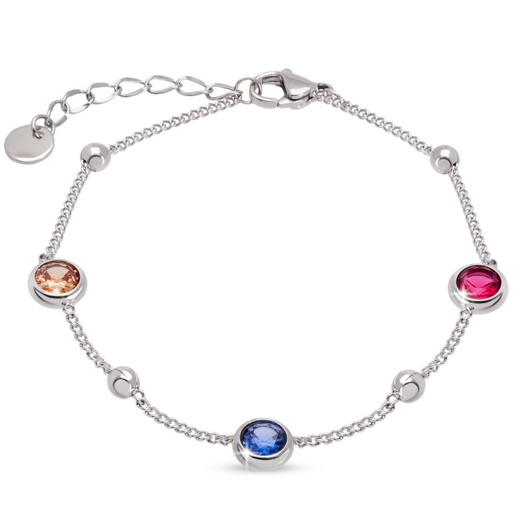 Náramek z chirurgické oceli s barevnými zirkony. Jemný, nadčasový a zářivý doplněk pro elegantní i moderní styl.