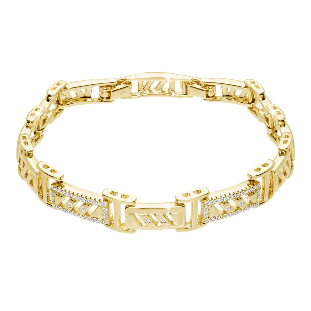 - Pozlacený náramek 14k, geometrické tvary se zirkony a průřezy.