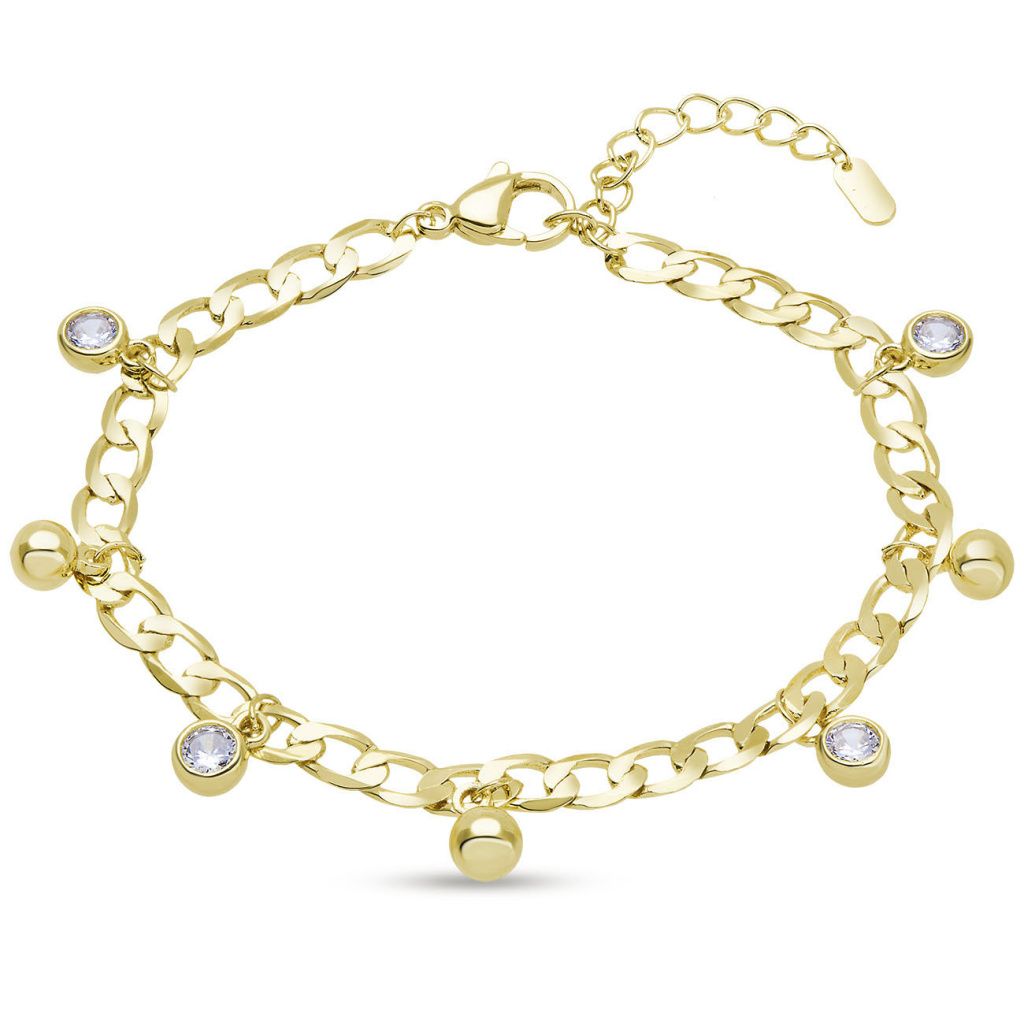 Dodejte svému stylu hravý a zároveň elegantní detail. Tento jemný náramek kombinuje výrazné kuličky se zářivými zirkony a vytváří harmonický, nadčasový doplněk pro každou příležitost.