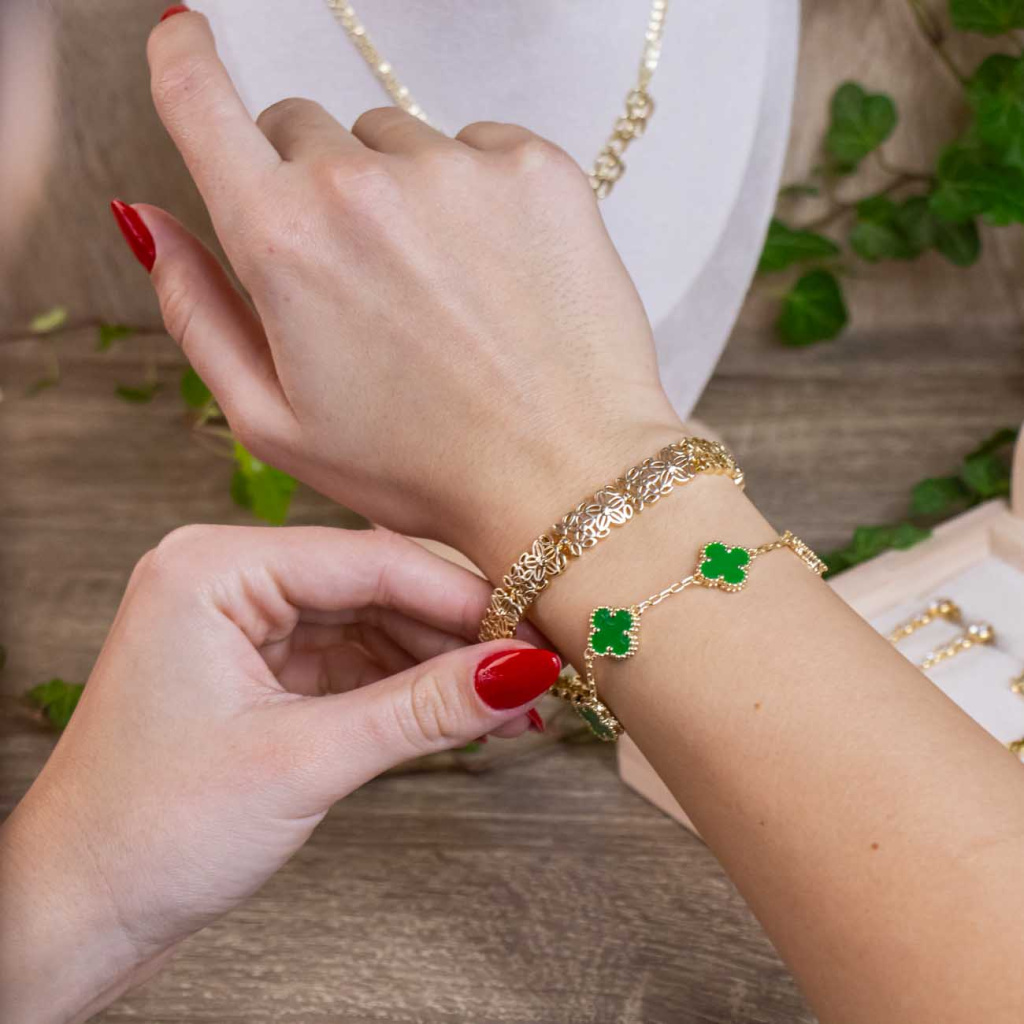 Elegantní náramek tvořený jemnými květinovými články vyniká svou vzdušnou strukturou a precizním zpracováním. Okouzlí vás svým romantickým nádechem a snadno se stane oblíbeným doplňkem pro každodenní nošení i slavnostní příležitosti.
