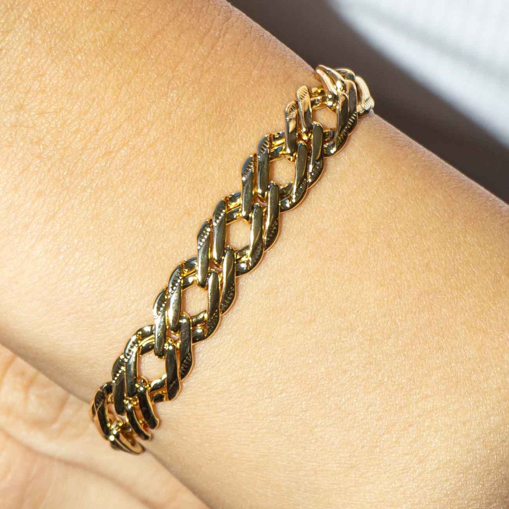 Náramek vynikne samostatně jako dominantní doplněk, ale skvěle se kombinuje i s jemnějšími šperky pro kontrastní vrstvení.