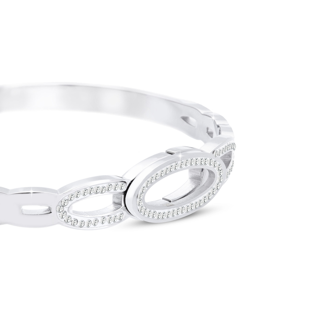 Náramek na ruku z chirurgické oceli - pevný 5127-7, oválky ozdobené zirkony 2002128
