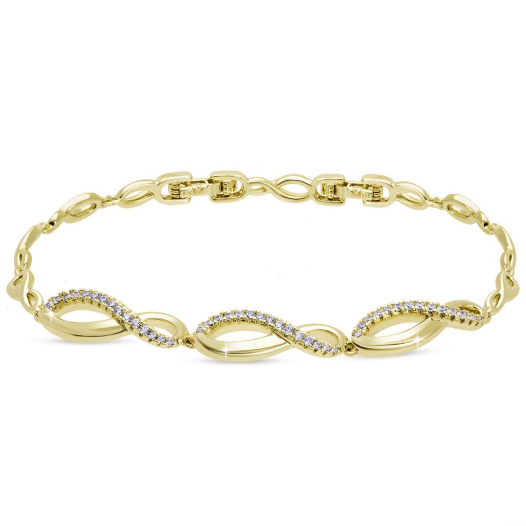Tento náramek působí jemně a zároveň zářivě díky preciznímu zpracování a elegantnímu motivu nekonečna. Kombinace hladkých linií a třpytivých zirkonů vytváří nadčasový šperk, který symbolizuje harmonii a nekonečnou krásu.