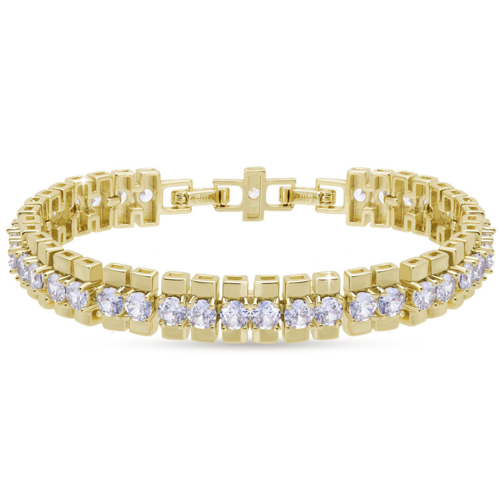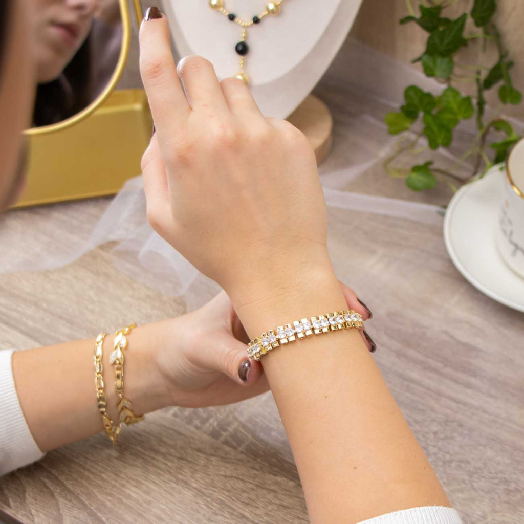 Elegantní náramek pozlacený 14K zlatem osazený výraznými zirkony zaujme luxusním a nadčasovým vzhledem.