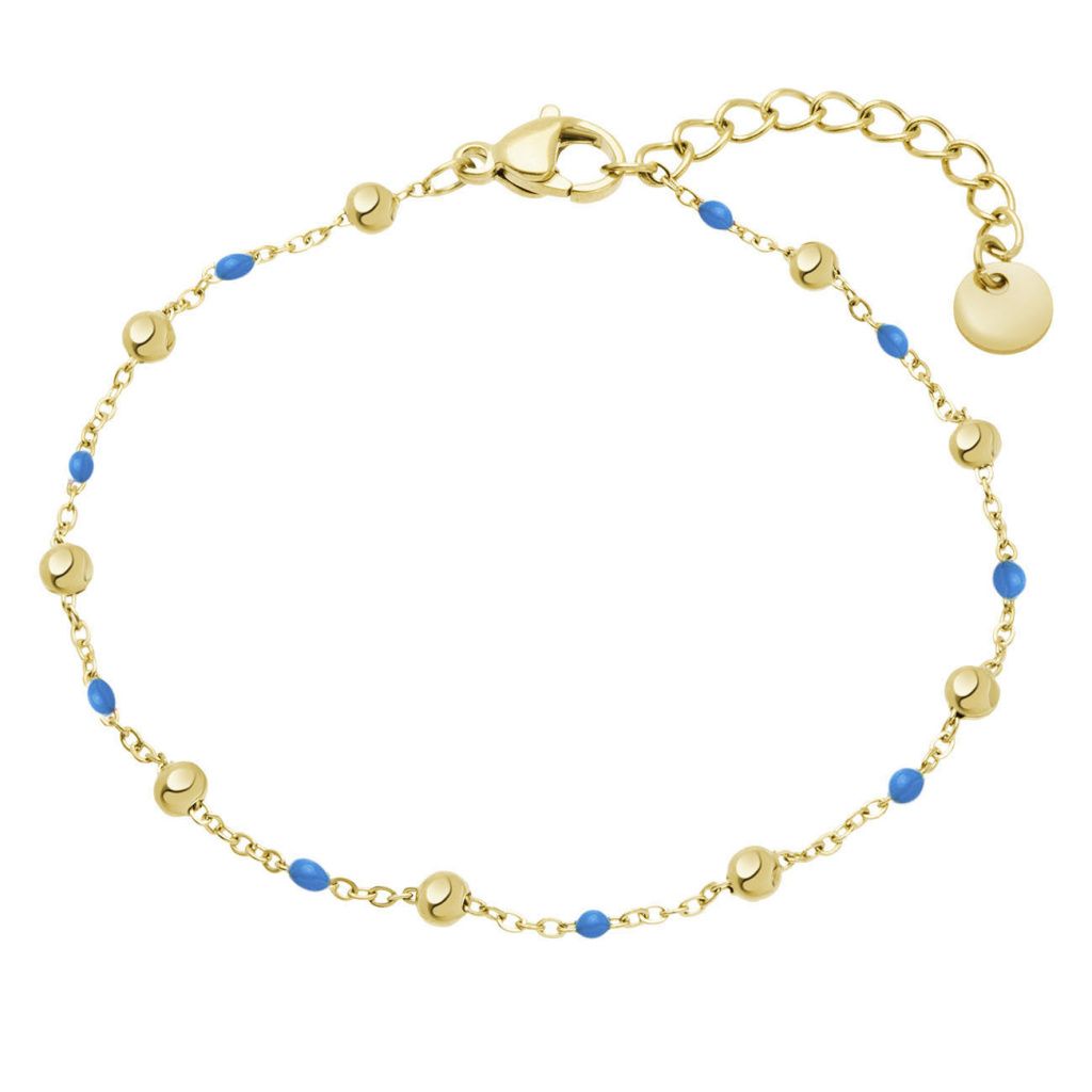 Jemný náramek s drobnými kuličkami a decentními modrými prvky působí svěže a nadčasově. Zářivý pozlacený povrch v kombinaci s barevným akcentem vytváří harmonický a elegantní doplněk. Precizní provedení podtrhne Váš styl při každodenním nošení i výjimečných chvílích.