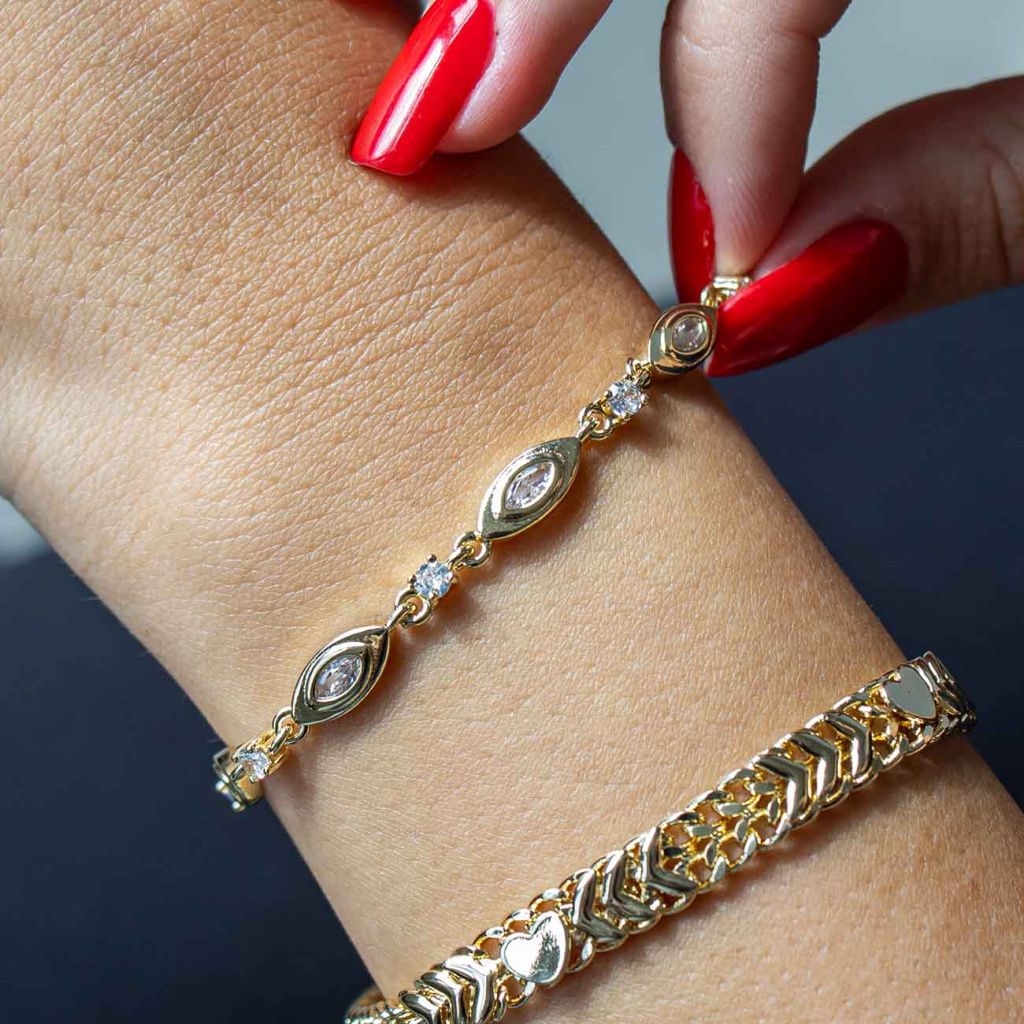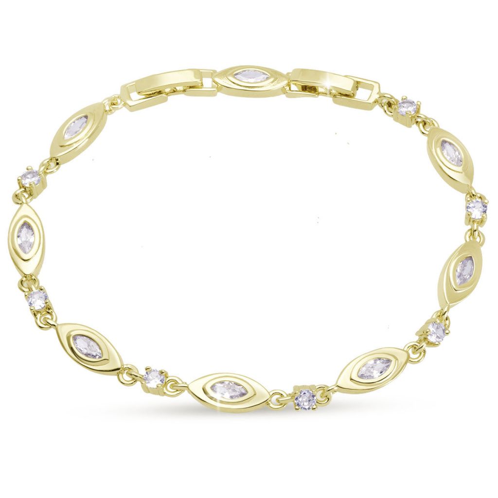 Jemný a nadčasový náramek, který zaujme svým pravidelným vzorem oválných motivů doplněných třpytivými zirkony. Kombinace hladkého pozlaceného povrchu a jemného lesku kamenů vytváří harmonický šperk, který působí luxusně a zároveň velmi decentně. Ideální volba pro každodenní nošení i slavnostní příležitosti.