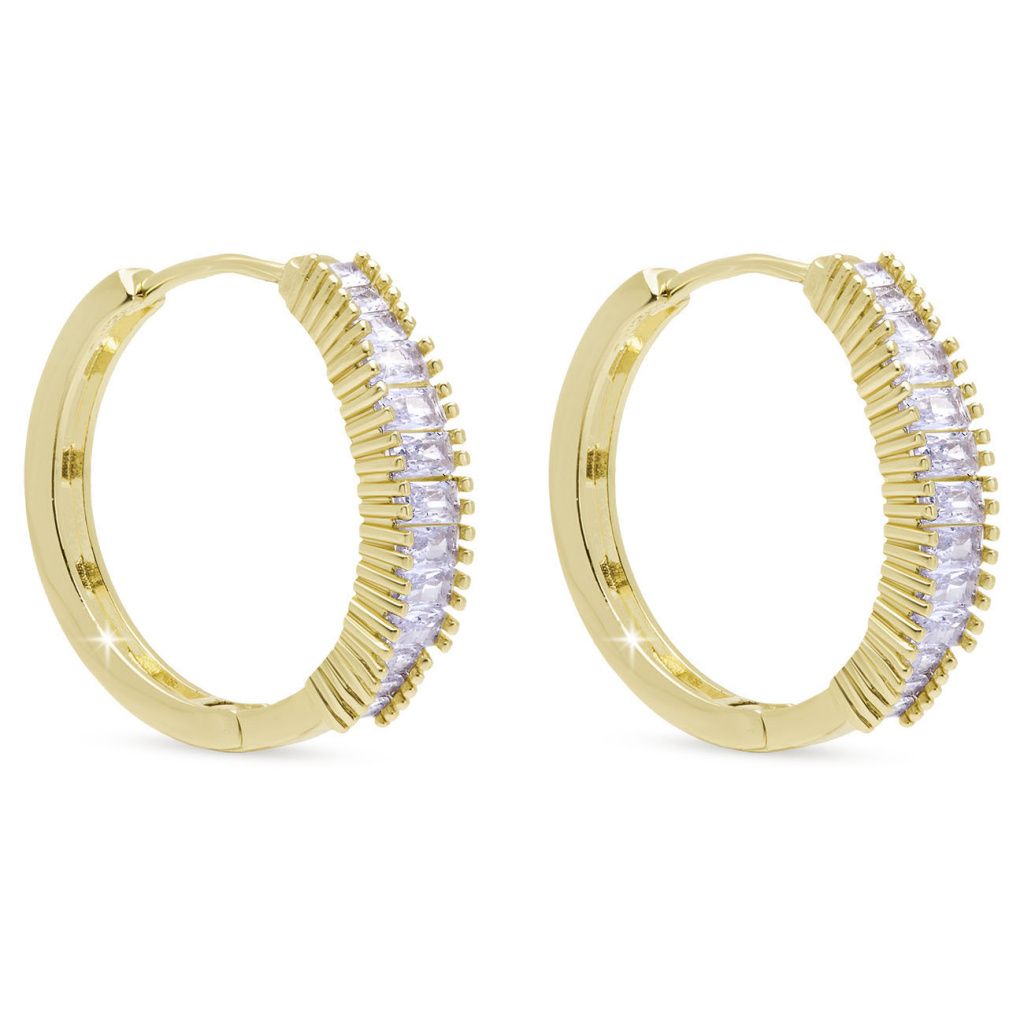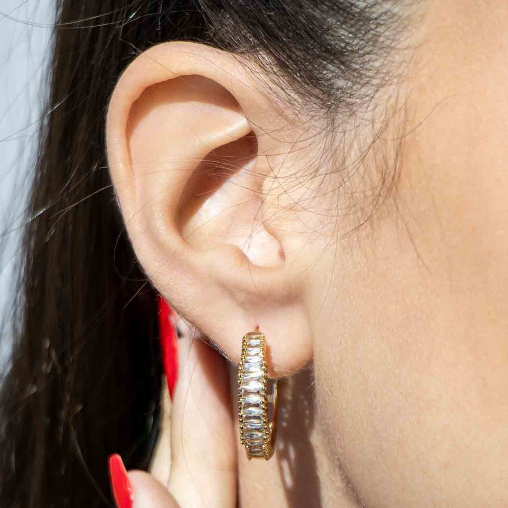 Tyto elegantní náušnice zaujmou svým jemným, ale výrazným třpytem zirkonů, které dokonale doplňují zářivý povrch pozlacený 14K zlatem. Precizní zpracování a nadčasový kruhový design z nich dělají ideální doplněk pro každodenní nošení i slavnostní příležitosti. Váš styl díky nim získá sofistikovaný a ženský nádech.