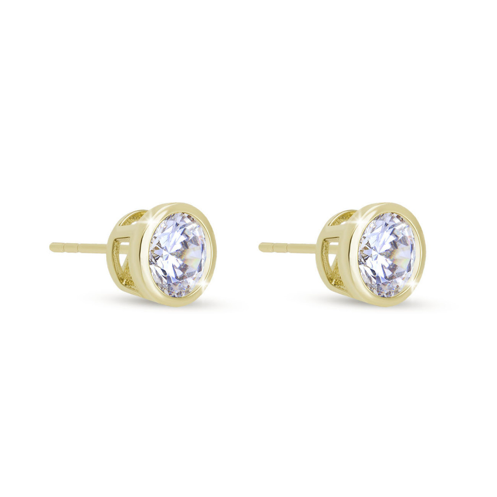 Pozlacené náušnice z rhodiovaného kovu s kulatým zirkonem. Jemný, zářivý a nadčasový doplněk pro každodenní eleganci.