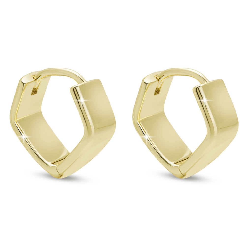 Pozlacené náušnice z rhodiovaného kovu s hladkým designem. Nadčasový, zářivý a elegantní doplněk pro každý den.