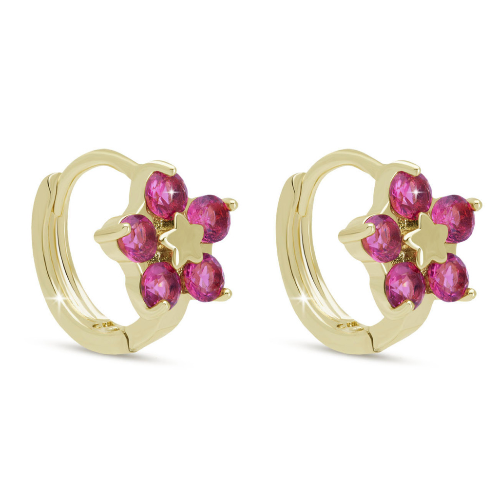Tyto náušnice zaujmou na první pohled svým zářivým květinovým motivem, který je doplněný výraznými růžovými zirkony. Působí jemně, ale zároveň dodají Vašemu stylu hravý a nepřehlédnutelný akcent. Precizní zpracování a nadčasový design z nich dělají ideální doplněk pro každodenní nošení i výjimečné příležitosti.