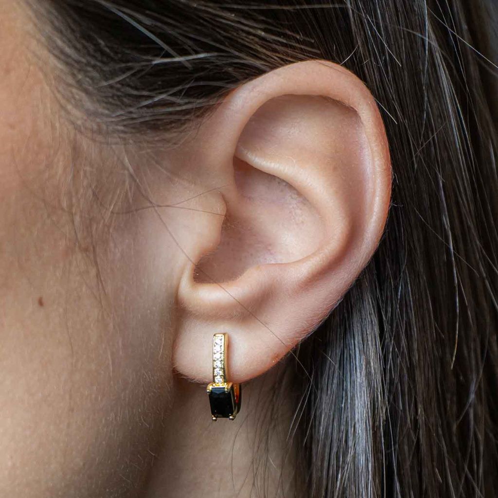 Dodejte svému stylu výrazný a zároveň elegantní akcent s těmito precizně zpracovanými náušnicemi. Kombinace hlubokého černého zirkonu a jemného lemování čirými zirkony vytváří zářivý kontrast, který působí nadčasově a sofistikovaně. Ideální volba pro ženy, které milují jemný, ale nepřehlédnutelný šperk.