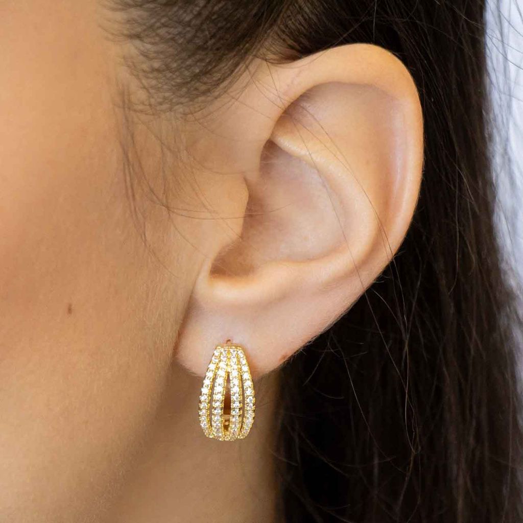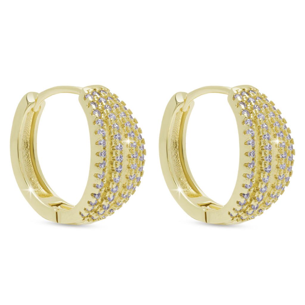 Dodejte svému vzhledu oslnivý a precizní detail, který zaujme na první pohled. Tyto výrazné náušnice vynikají bohatým osazením zirkonů a nadčasovým designem, který podtrhne Vaši eleganci.