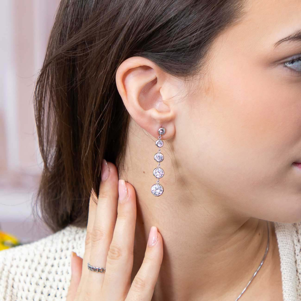 Tyto výrazné náušnice rozzáří Vaši tvář jemným, ale nepřehlédnutelným třpytem. Precizní linie a postupně se zvětšující zirkony vytváří nadčasový efekt elegance, který podtrhne Vaši ženskost při každé příležitosti. Jsou ideální volbou pro chvíle, kdy chcete zazářit s lehkostí a vkusem.