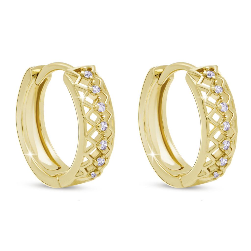 Pozlacené náušnice z rhodiovaného kovu se zirkony. Zářivý, jemný a nadčasový doplněk pro elegantní každodenní styl.
