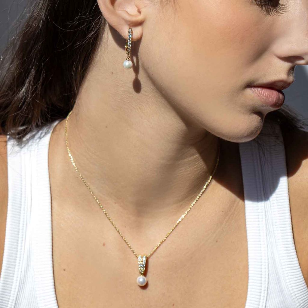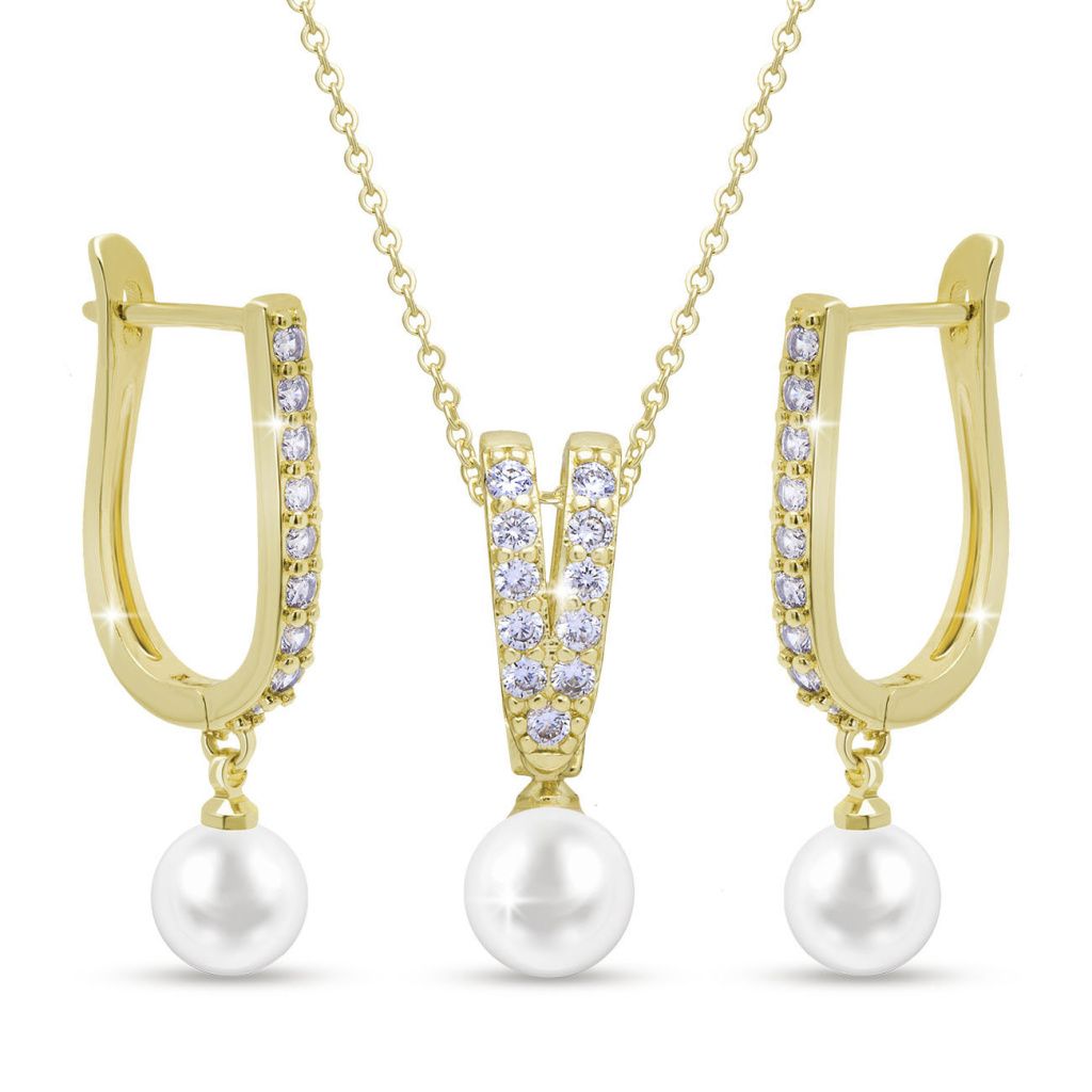 Podtrhněte svou eleganci šperkem, který nikdy nevyjde z módy. Tento jemný a zároveň výrazný set spojuje zářivý lesk zirkonů s něžnou krásou perlového detailu a vytváří dokonale harmonický celek.