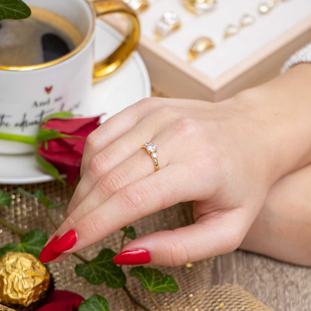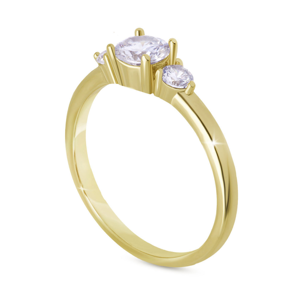 Elegantní a nadčasový design tohoto prstenu sází na harmonii a jemný třpyt. Tři čiré zirkony – dominantní středový a dva menší po stranách – vytvářejí dokonalou souhru, která působí sofistikovaně a romanticky. Minimalistický tvar činí z prstenu univerzální šperk pro každodenní nošení i slavnostní chvíle.