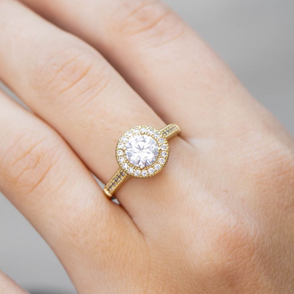 - Halo design s drobnými zirkony pro maximální lesk