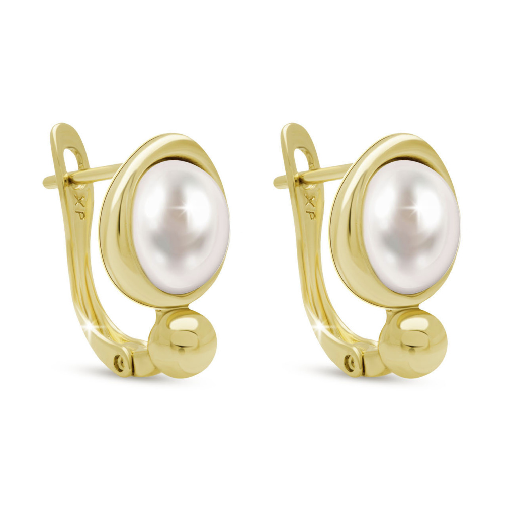 Výrazné náušnice s dokonale kulatou perlou zasazenou do elegantního, asymetrického lůžka upoutají na první pohled. Design doplňuje drobná zlatá kulička ve spodní části, která dodává šperku jemný a originální akcent. Skvělá volba pro ženy, které mají rády rafinovanou eleganci. Zapínání na ruský patent je bezpečné a pohodlné.