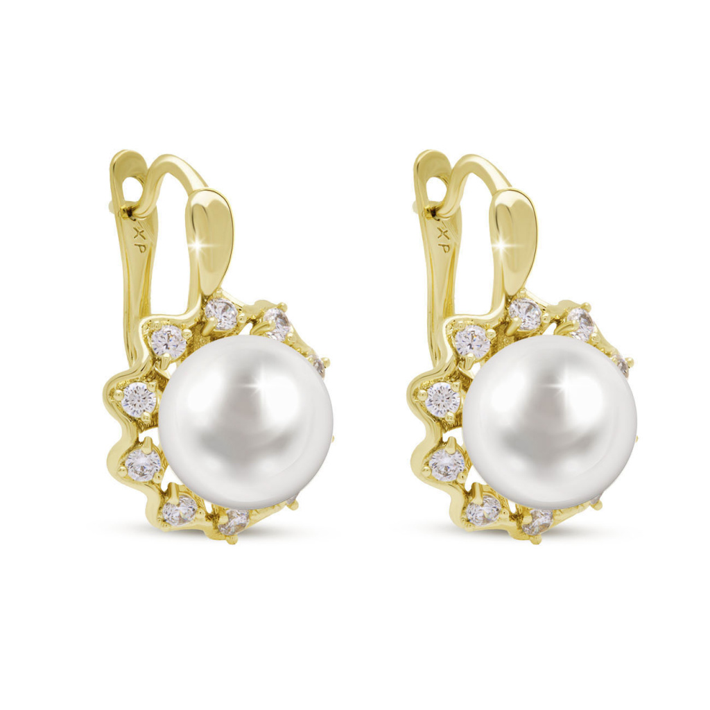 Okouzlující náušnice ve stylu starožitného šperku zdobí výrazná perla obklopená jemnými zirkony v dekorativním rámečku. Zlatý tón a detailní zpracování působí sofistikovaně a nadčasově. Díky zapínání na ruský patent perfektně drží a zároveň dodávají elegantní vzhled.