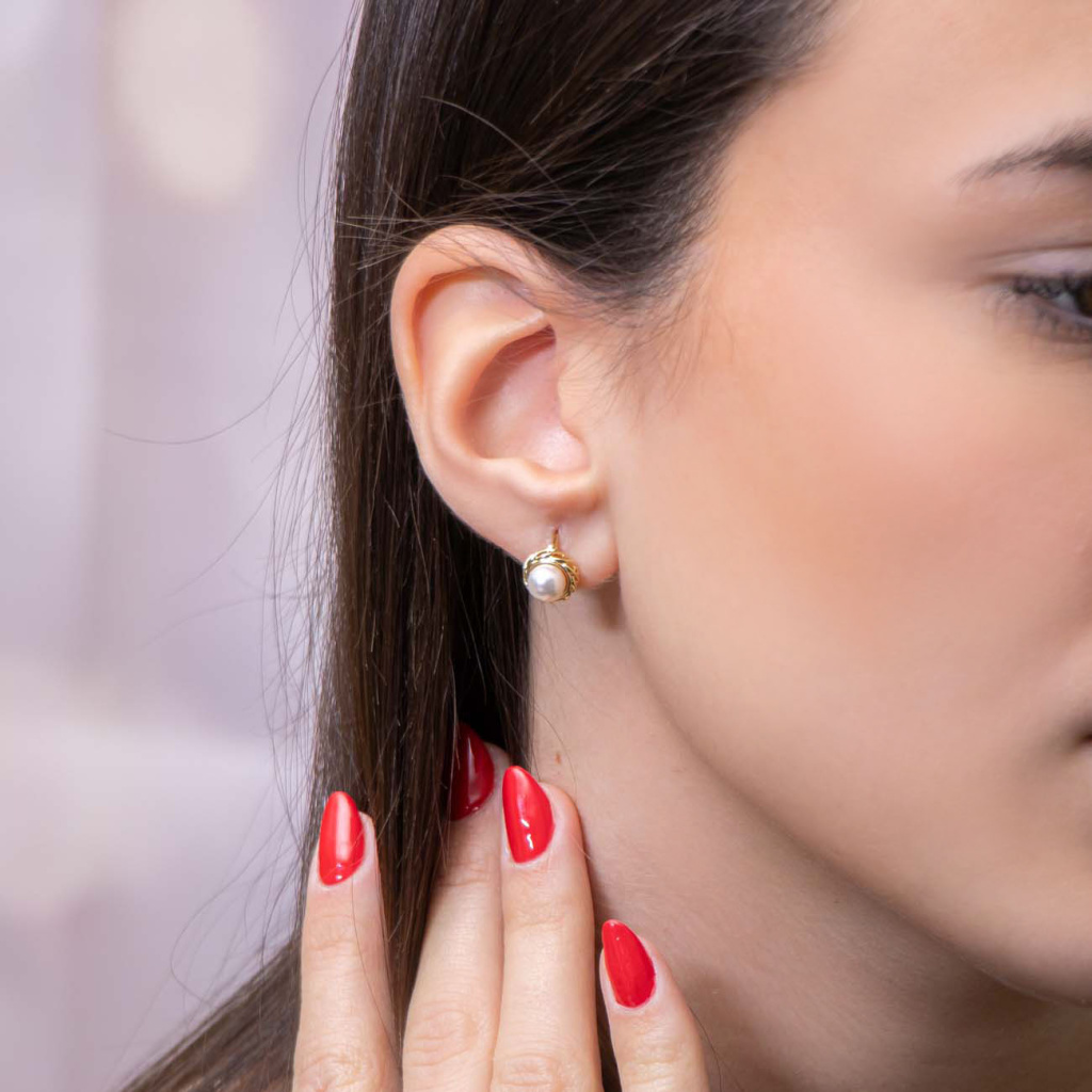 Jemné kruhové náušnice s perlou zasazenou do dekorativního lůžka působí romanticky a zároveň nadčasově. Lesklý povrch a propracovaný design dodávají šperku výjimečný charakter, který se hodí jak ke každodennímu outfitu, tak ke slavnostním příležitostem. Díky praktickému kloubovému zapínání se pohodlně nasazují a bezpečně drží na uchu.