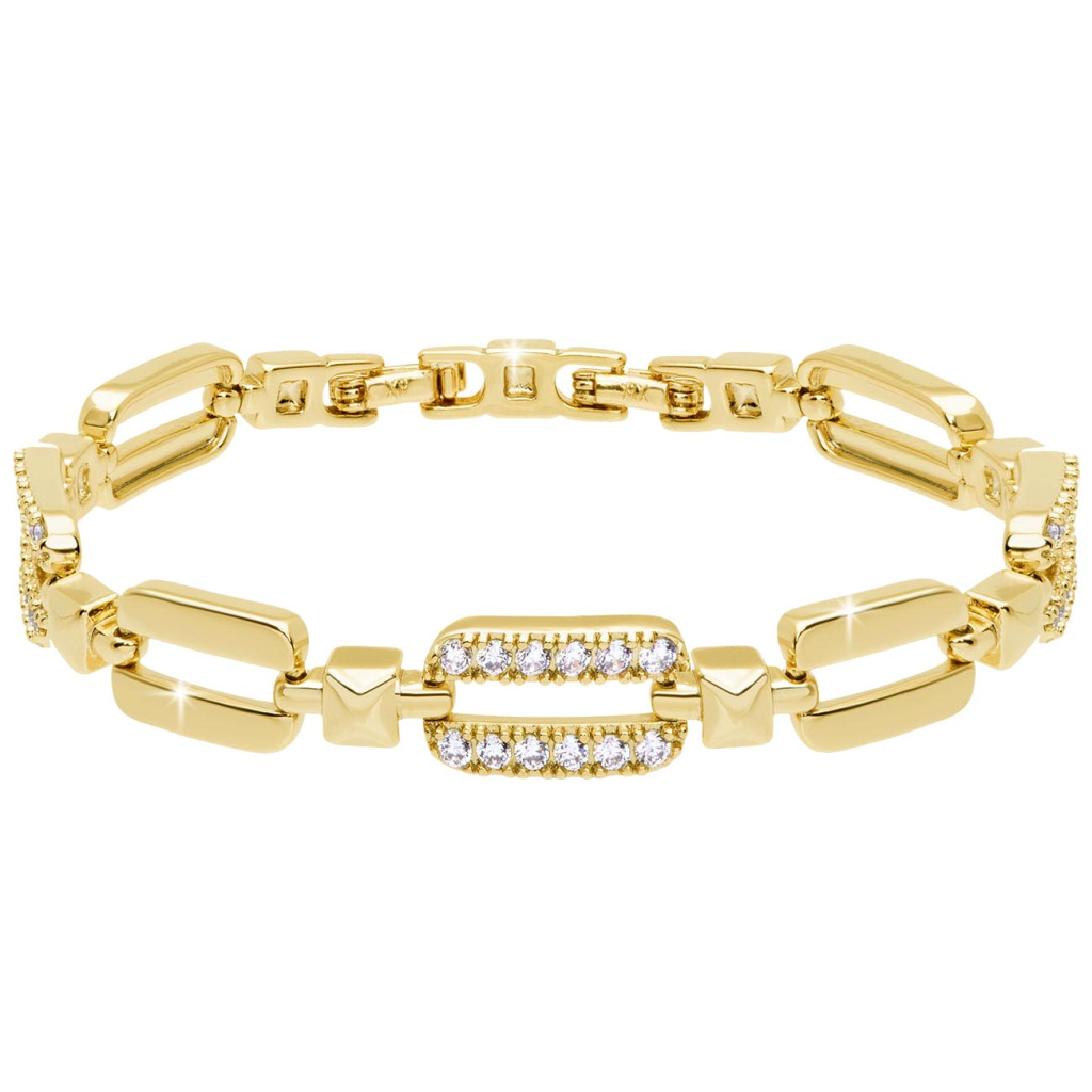 - Představujeme vám pozlacený náramek 14k se zirkony zdobený jemnými zirkony, který dodá sofistikovanost každému oblečení. Tento úžasný náramek je pokovený 14karátovým zlatem pro extra luxusní lesk. Je vybaven krásným motivem, je ideální pro ty, kteří chtějí svému vzhledu dodat něco mimořádného a jedinečného. Je také vybaven klasickým zapínáním. Ať už jej budete nosit každý den, nebo si jej schováte jen pro zvláštní příležitost, tento zlatý kousek se o to postaráte, abyste oslnili, ať už půjdete kamkoli!